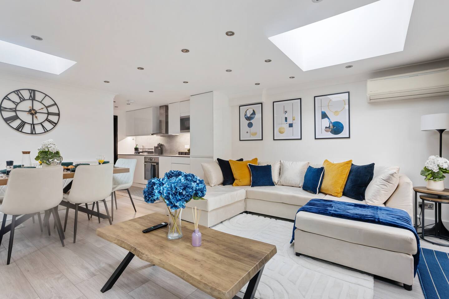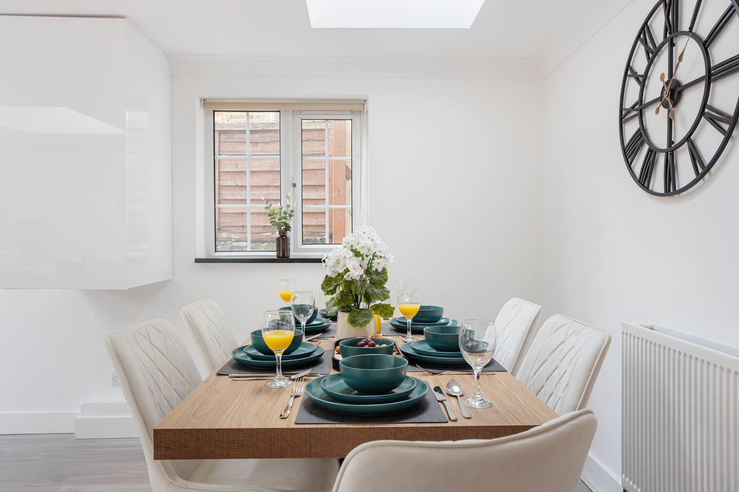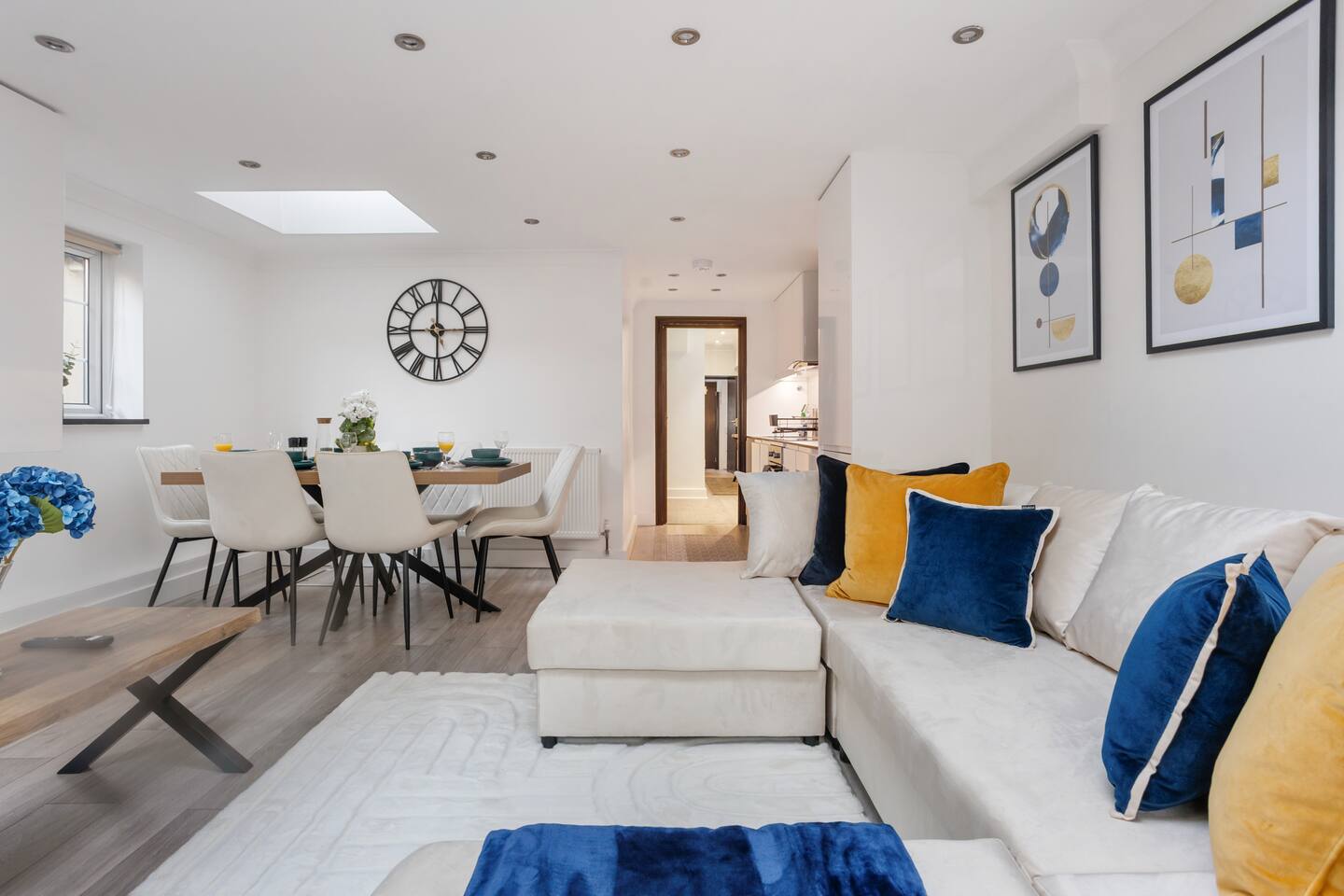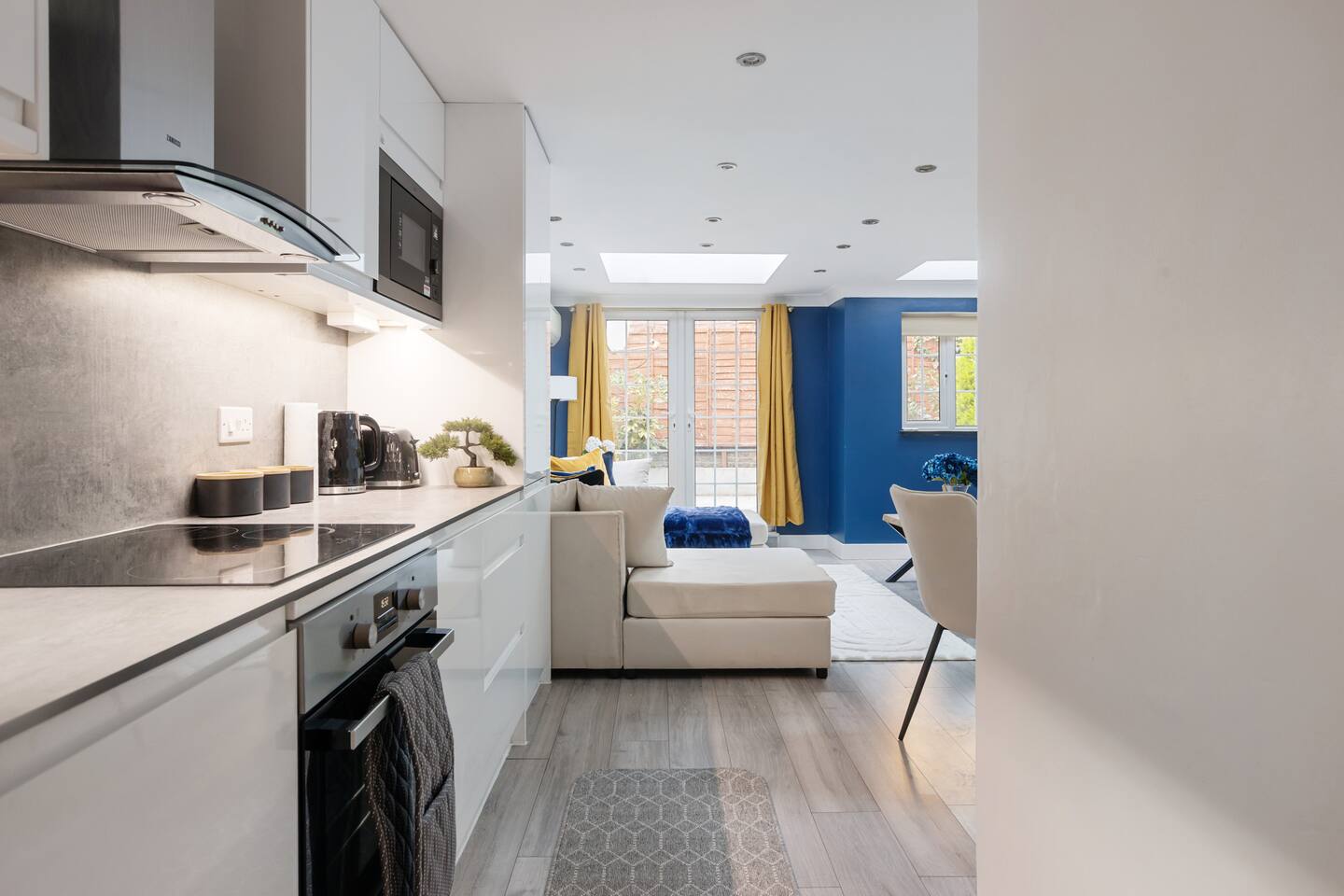 ๐ก The Space Welcome to your stylish home-away-from-home โ ideal for families, friends, or business guests. โข 2 Bedrooms, 4 Beds โ sleeps 7โ8 guests comfortably โ๐ Master Bedroom โ Relax in a cosy king-size double bed with your own modern en-suite bathroom. โ๐ Second Bedroom โ Features a comfortable queen dooble bed plus a single bed, with a private en-suite โ perfect for families or mixed groups. โ๐ Living Area โ Includes a double sofa bed for extra guests. โข Extra WC โ Handy separate toilet room. โข Bright Open-Plan Kitchen & Lounge โ Skylights, modern dรฉcor, and French doors opening to the private garden. โข Fully Equipped Kitchen โ Dishwasher, washer/dryer, oven, hob, fridge freezer, microwave, and all essential cookware ๐ณ โข Private Garden โ A peaceful space to enjoy fresh air, morning coffee, or evening drinks ๐ฟ